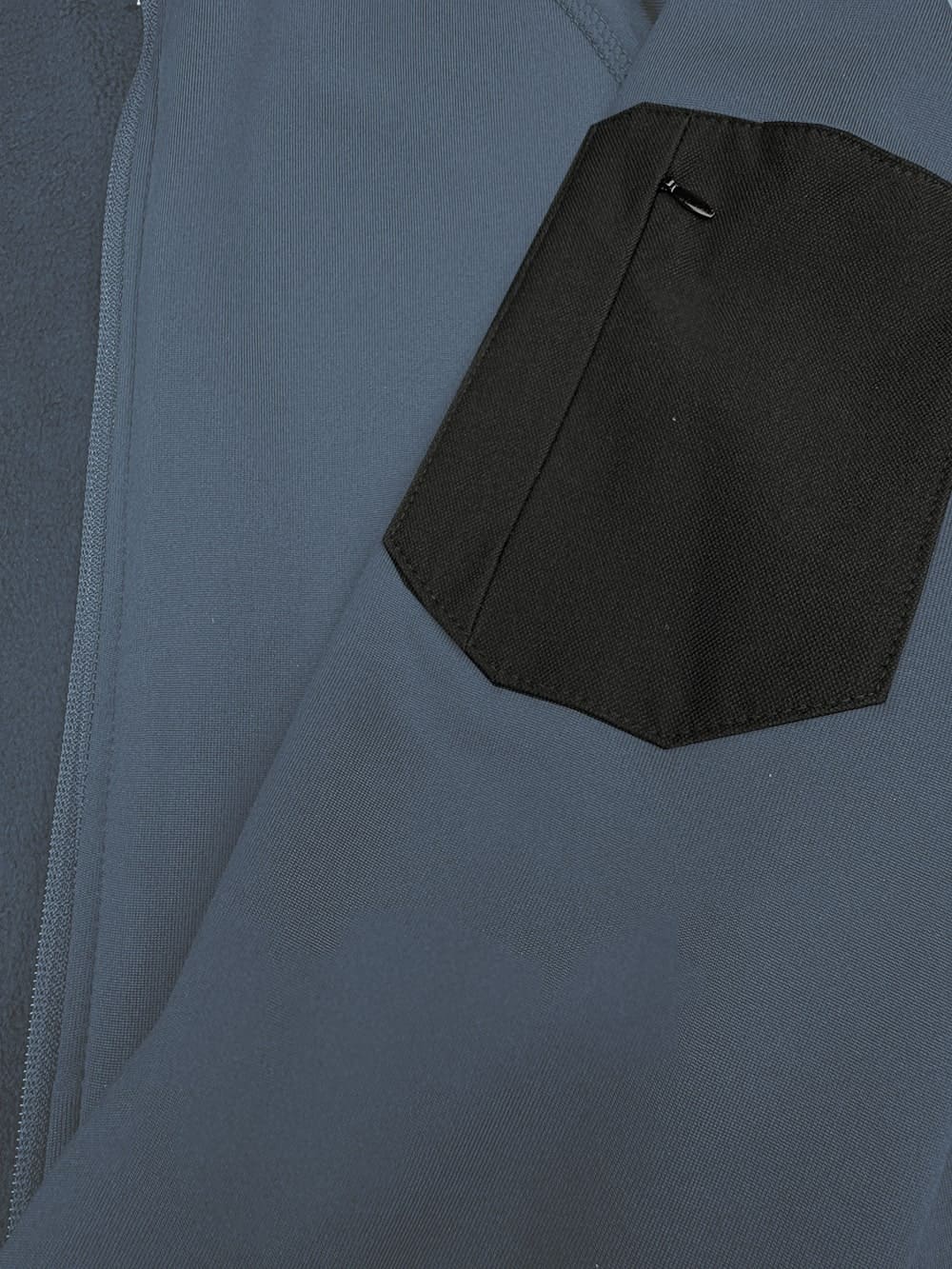 • Bolsillo en el brazo con tela de refuerzo elásticada y cierre de seguridad.