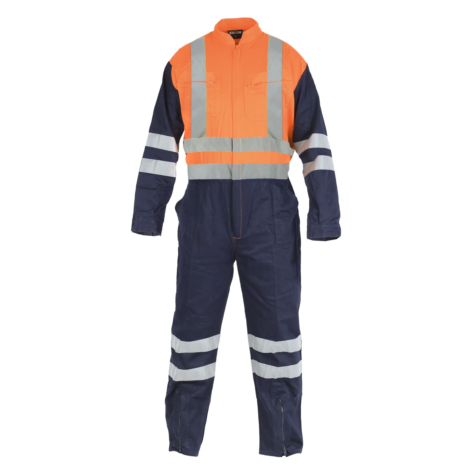 Buzo de trabajo bicolor con cintas reflectantes de 2 pulgadas de ancho, de alta visibilidad, posee una variedad de bolsillos multifuncionales y cintura elasticada en espalda, Puños y tobillos ajustables, Excelente calze de tallaje y resistente cierre doble carro. Producto cumple con normativa internacional europea EN 471:2004, clase lIl